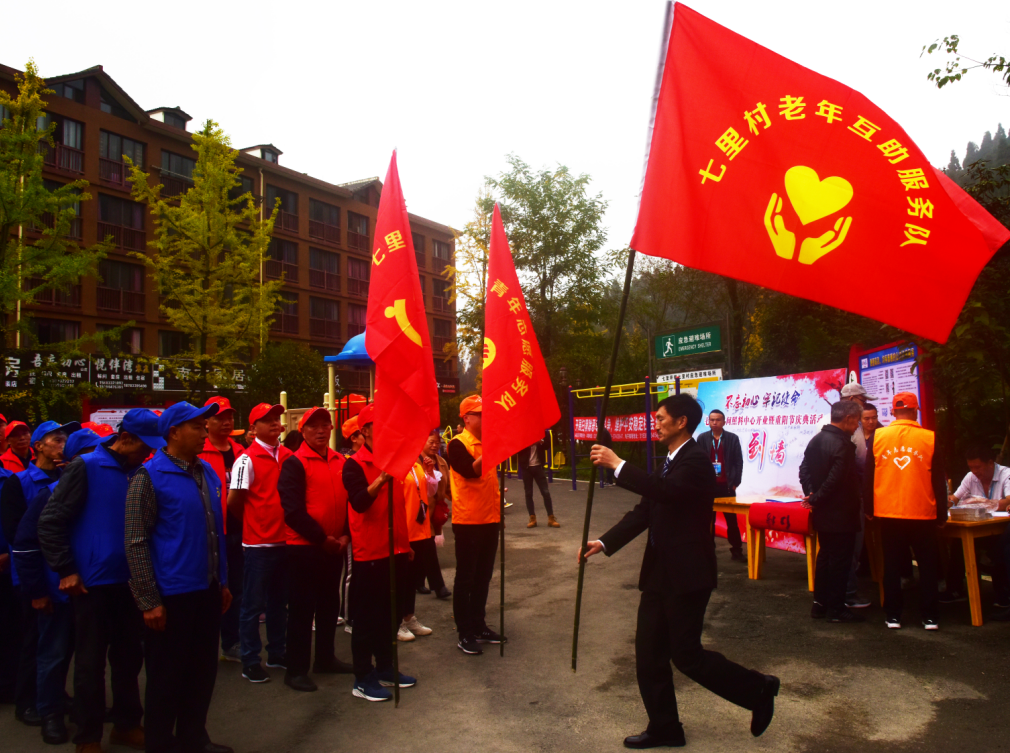 10月6日,“七里村日间照料中心开业暨重阳节庆典活动”在眉山市洪雅县七里村举行,村子里的老人们欢聚一堂,庆祝新中国成立70周年,喜过重阳佳节。