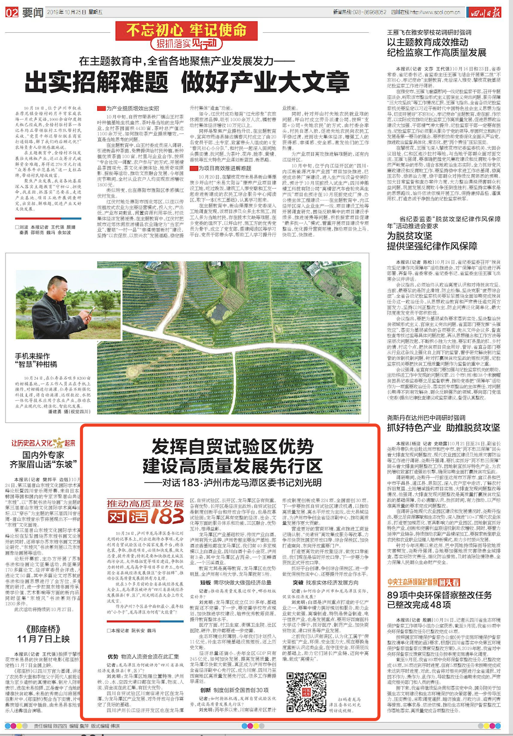 刘光明:两年多以来,川南临港片区累计形成制度创新成果224项,全国首创30项。下一步,我们要抢抓自贸试验区建设机遇,以推动高质量发展、高水平开放为主线,不断壮大县域经济,为泸州市争创全省经济副中心、推动高质量发展作出新的更大贡献。