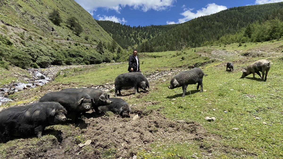 泽仁瓦吉的藏香猪采取“放养+圈养”的模式,白天所有的藏香猪在离家2公里以外的高山上自由活动,晚上回圈舍睡觉休息。“‘半野生’的藏香猪运动量足,肉质紧实有弹性,肥瘦相间,品相和营养价值更优。”