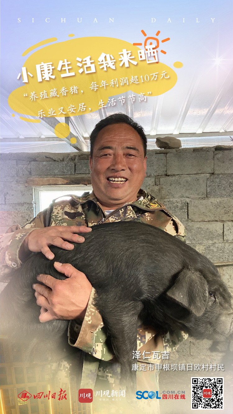家住康定市甲根坝镇日欧村的泽仁瓦吉一家是当地有名的养殖大户,全家4口人,妻子泽仁志玛打理家务,两个孩子在成都和康定上学。自从养殖了藏香猪,泽仁瓦吉家的收入直线上升。“2015年,我全家的年收入3000元,全村12户贫困户,我还是倒数那家。现在一年纯收入10多万元,还是养猪能手。虽然辛苦、劳累,但心里美滋滋!”从贫困户变为村里的致富带头人,泽仁瓦吉的转变从养殖藏香猪开始。
