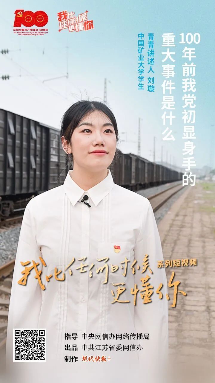 8 月 10 日," 我比任何时候更懂你 " 系列短视频第 17 集《100 年前我党初显身手的重大事件是什么?》上线,本集青青讲述人是中国矿业大学的硕士研究生刘璇。