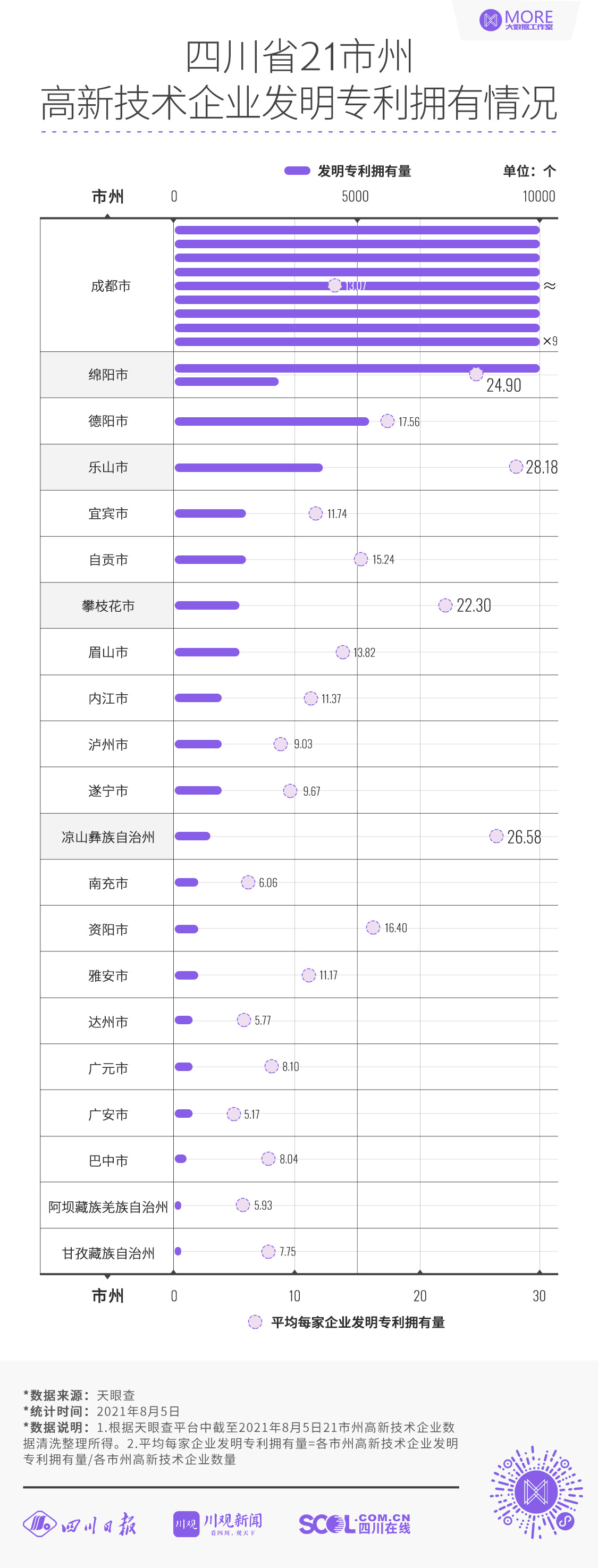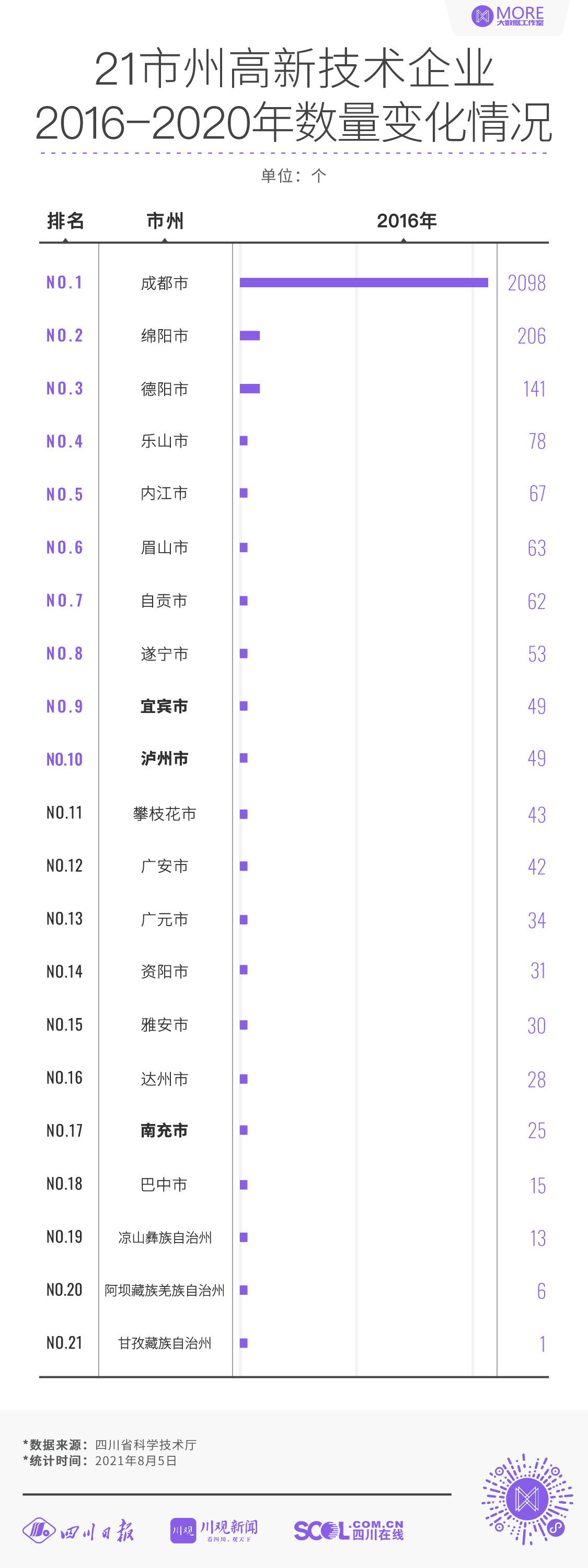 四川高新技术企业发展如何?科技创新实力如何?川报全媒体集群MORE大数据工作室从四川21市州高新技术企业数量变化、发明专利拥有量、融资企业数量等维度分析四川高新技术企业的发展情况,看看哪一个市州表现强劲!