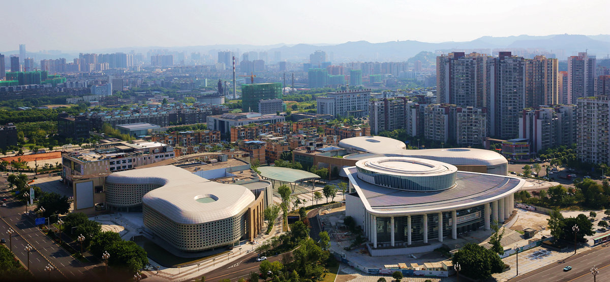 “四馆一中心”为南充规划展览馆、科技馆、青少年活动中心、地方志馆和图书馆,从空中看上去就像是一只翩翩起舞的蝴蝶,美观大气,它们的建成投用将为南充市民文化活动提供新空间,也是新的南充城市文化名片。