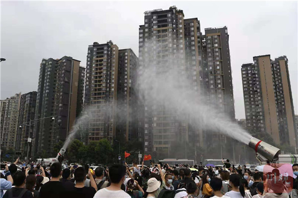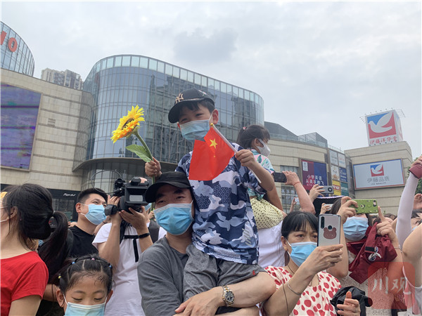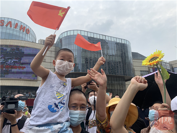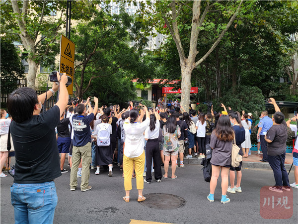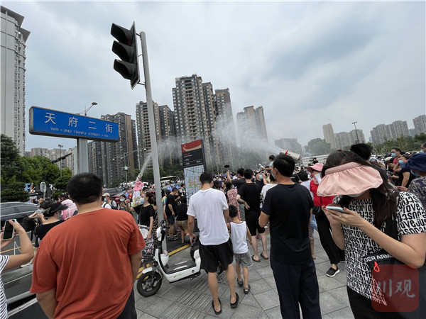 在成都青羊优品道曦岸小区门外,不少现场群众也高举手机记录这一时刻。