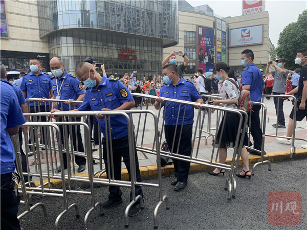 8月11日下午15时,川观新闻记者在现场看到,成都高新区天府二街雅颂居楼下,民警开始拆除不锈钢围栏和遮阳篷,现场群众挥舞国旗,高喊加油。