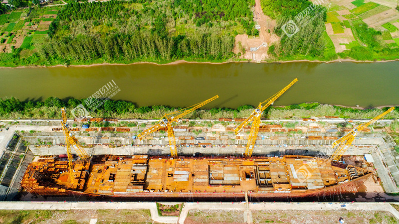 在四川省遂宁市大英县郪江下游处,有一艘“永不沉没的泰坦尼克号”正在如火如荼的建造中。11日,从空中鸟瞰这艘“永不沉没的泰坦尼克号”,轮廓已现。 这艘大船是按照100年前的游轮设计图纸和实际尺寸1:1建造,全长269.06米,宽28.19米,船体内部也将按原型展现当年泰坦尼克号的真实场景。据工作人员介绍,目前主船体已经修到了第7层。乍一望去,主船体庞大的身躯已经有了大气磅礴的壮阔形象。