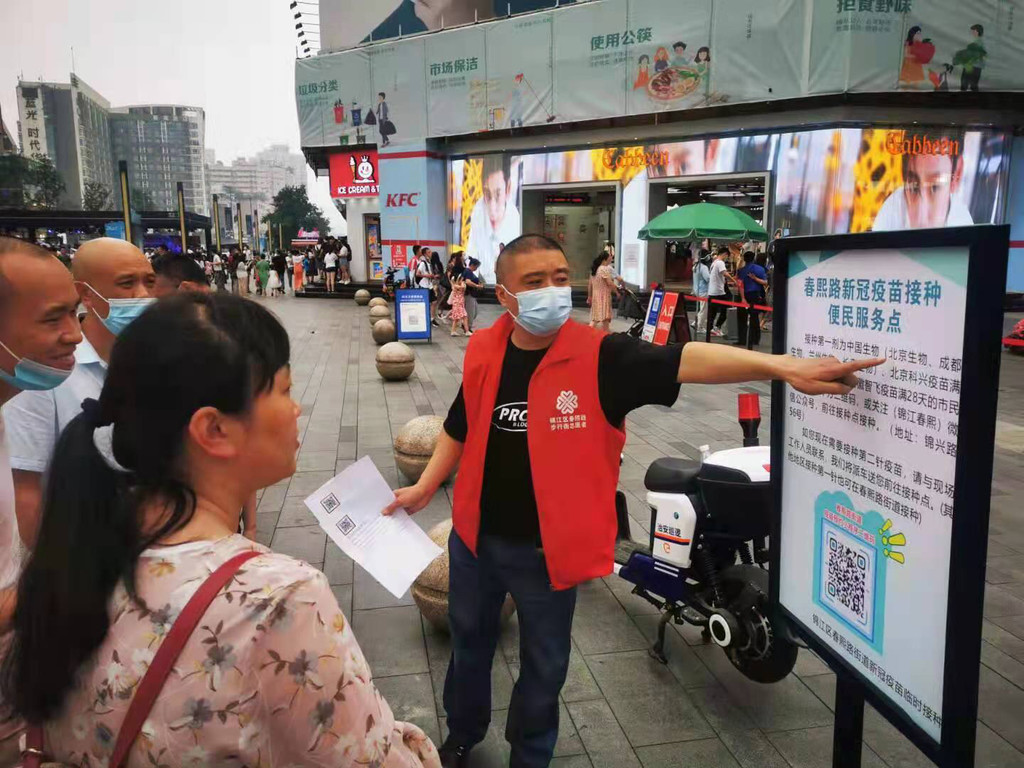 端午假期期间,疫苗接种便民车开到成都春熙路,贴心服务市民游客。
