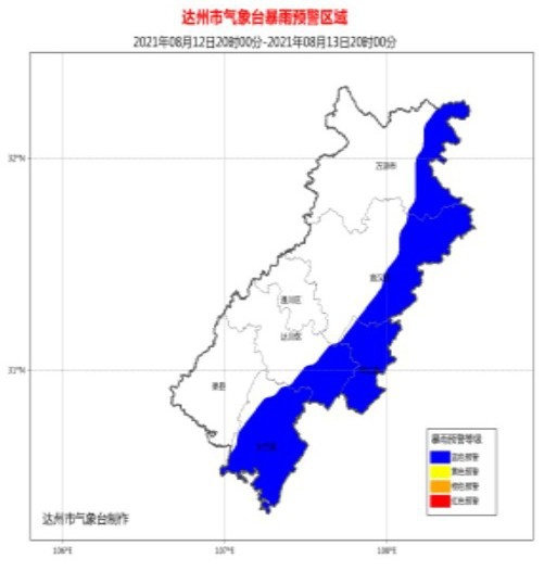 8月12日下午,四川省多个地方发布暴雨蓝色预警信号和雷电黄色预警信号,请相关地方注意防范。