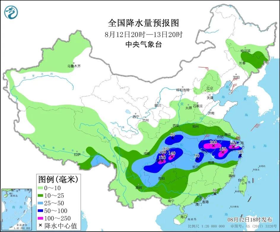 中央气象台8月12日18时继续发布暴雨黄色预警:江淮、江汉、江南大部等地有中到大雨,其中,安徽中南部、湖北东部和南部等地部分地区有暴雨或大暴雨;内蒙古中部、江苏南部等地部分地区有4-5级风。