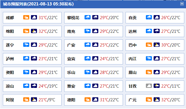 ●四川城市天气预报