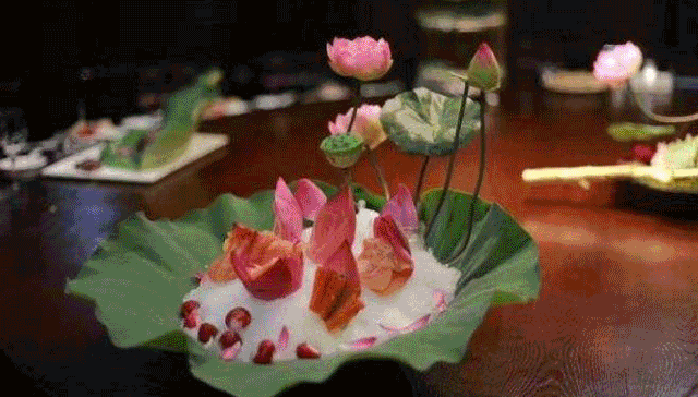 圣莲岛的荷花美不胜收,把荷花、莲蓬、莲子搬上餐桌,将现代烹饪技术和传统荷花文化相结合水上戏藕、荷花藕泥、荷叶粉蒸肉、芙蓉莲子酿肉蟹...一整套荷花菜系,美食+美景,绝配!