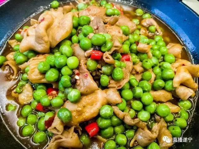 鲜猪大肠、新鲜豌豆,加几瓢豆瓣酱、香料、秘制酱料,砂锅烹制,一筷子肥肠,一勺豌豆,肥肠的糯,豌豆的清香,让人回味无穷、口齿留香。