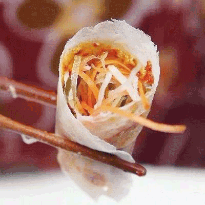 一张薄薄的面皮,放上芥末、辣椒、豆瓣酱包上萝卜丝、黄瓜丝、海带丝、豆芽倒入爱吃的甜醋或酸醋头一仰,顺势放进嘴里辛辣刺激的口感直接带动整个鼻腔为什么我的眼里常含泪水?因为“冲”你带不走,啦啦啦!