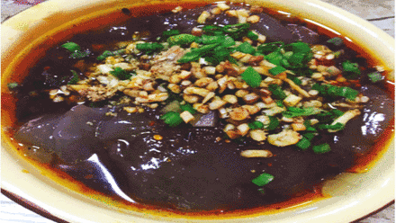 一碗切好的土豆片配上秘制辣椒油加味精、盐、葱花、香醋酸辣、麻辣、甜辣、酸甜辣四种口味选择你绝对不止吃一碗