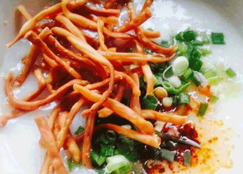 一种特色早餐,其实就是米糊不过加上馓子、大头菜、黄豆或花生、辣椒、盐、葱花、芝麻油吃的时候搅一下,让配料和米糊混合脆柔相融,別具風味