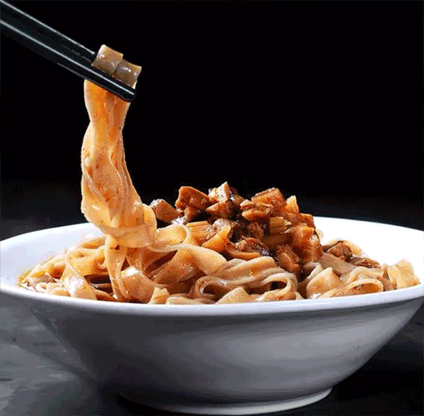 将擀好的面片对叠成半圆形用直刀在直线的一边切成面条圆边留1厘米左右不切断,展开成炉桥形形状独特,煮后不易松散清汤、红汤,牛肉、肥肠、鸡杂、豌豆……口感细嫩、爽滑、劲道