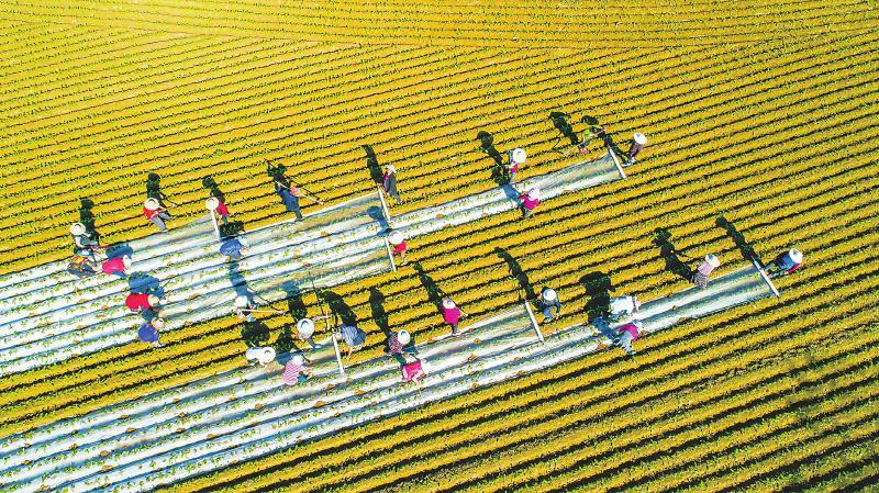 10月16日,遂宁射洪市沱牌镇桑树林村村民正忙着给地里的萝卜青苗盖薄膜。脱贫攻坚战中,我省许多地方都在推行“订单种植”模式,帮助村民增收致富。 刘昌松 摄(视觉四川)