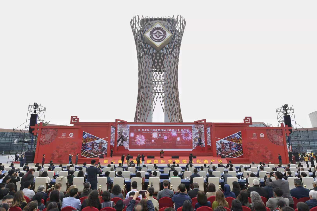 10月17日,第七届中国成都国际非物质文化遗产节开幕式在成都国际非遗博览园隆重举行。本届非遗节以“传承多彩文化 创享美好生活”为主题,设立1个主会场和28个主题分会场,来自86个国家的1100余个非遗项目和5600余名代表将共襄盛会,开展国际展览、国际论坛、国际竞技、国际展演和互动体验等各类活动540余场。