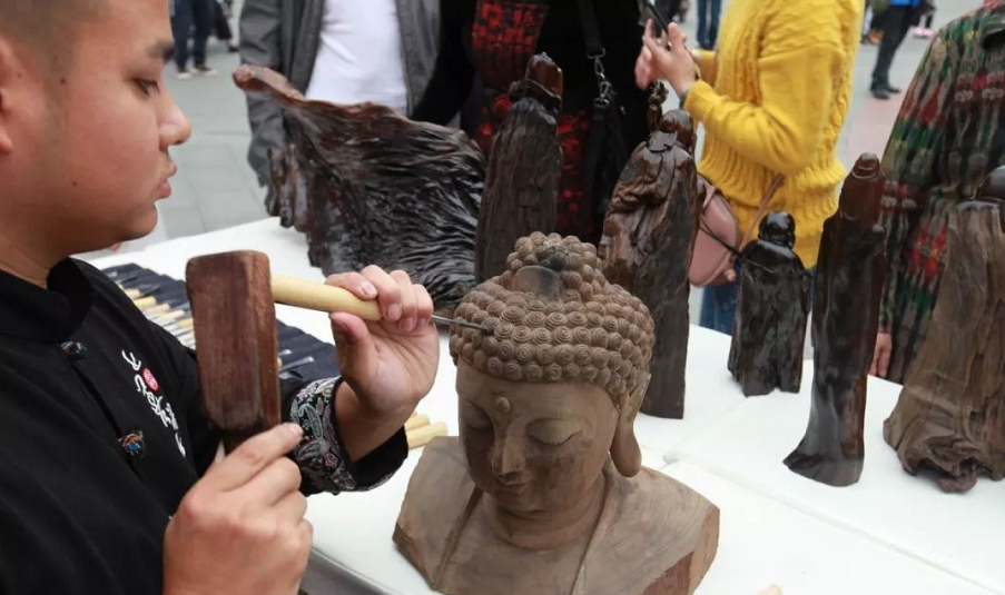 自古民间素有“纵有珠宝一箱,不如乌木一方”, 东坡区是阴沉木出产地之一。王氏阴沉木木雕技艺选用阴沉木,工艺分为立体圆雕、根雕、浮雕三大类。在制作过程中,一个作品的技艺可以有圆雕、浮雕、镂雕或几种技法并用,其工艺品极具艺术价值。