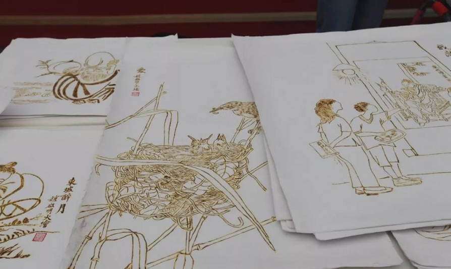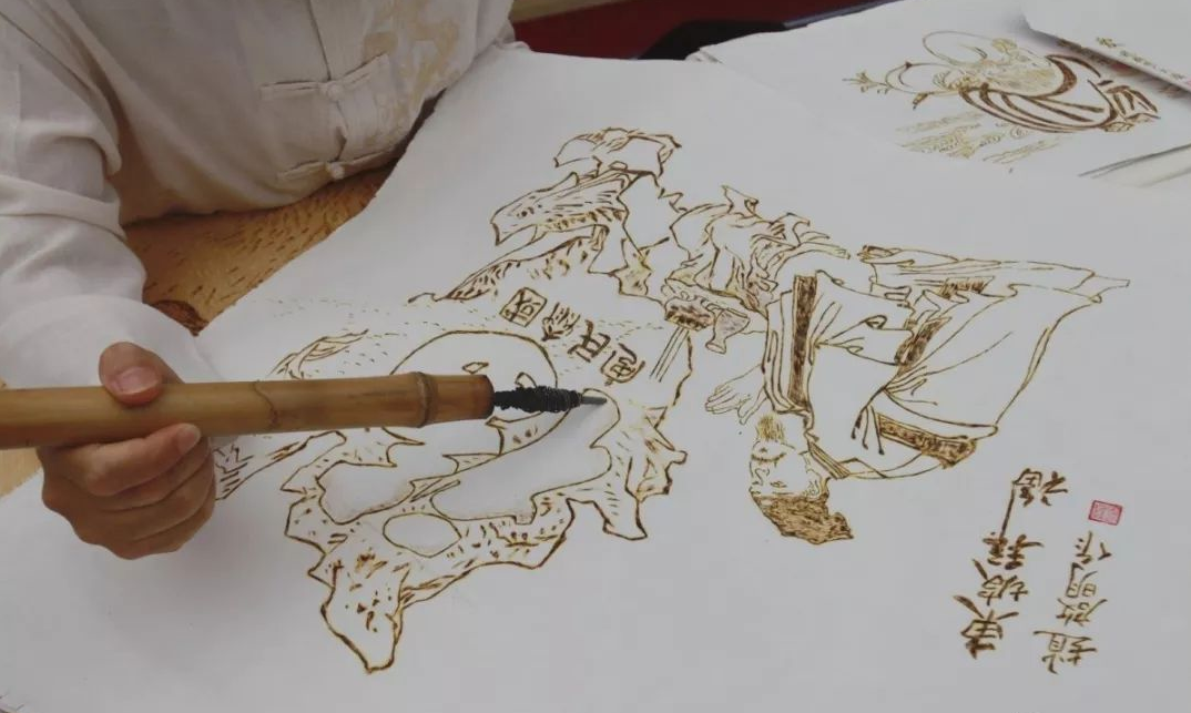 雅致堂火绘是以铜或铁做成带木柄的铁笔,用木炭或酒精火烧特制笔头得到适当温度,主要在木、竹制品或土纸上绘制图画,色泽层次丰富,典雅古朴。制作过程全部手工完成,传承了传统火绘技艺精髓。