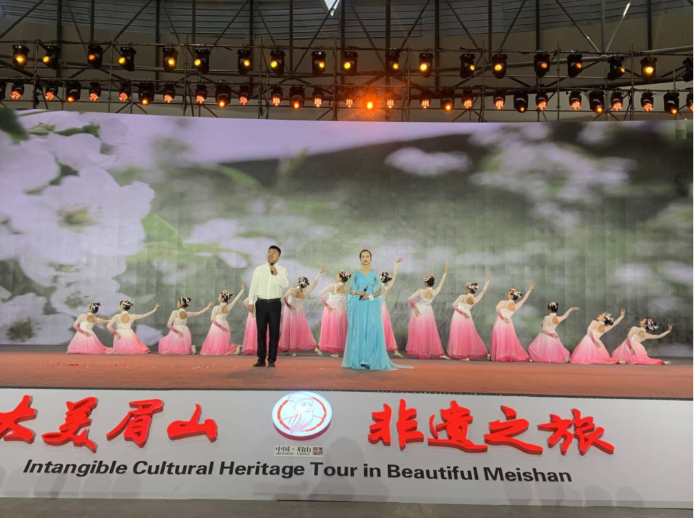 活动在四川清音《欢迎你到眉山来》中拉开序幕;男女二重唱《守望传承》讲述一项古老技艺的传承,从学习,到熟练,再到推广、传授,都需要巨大的时间和精力,只有大家一起守望传承,才能让非遗文化发扬光大;情景歌伴舞《东坡味道长》将东坡文化、三苏文化研学路线融于其中,让观众身临其境的感受东坡魅力。