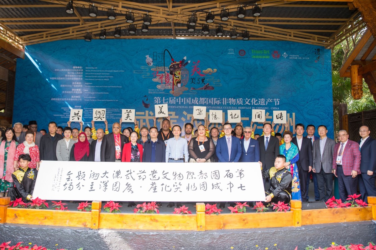 10 月 18日上午,第七届中国成都国际非物质文化遗产节武侯浓园大洋洲主题分会场在天艺浓园艺术博览园B区·天艺揭幕。该分会场集合“文旅、文产、文博、文商、文惠、文贸”等要素,并以“国际性、文旅融合、艺术惠民”等特色开展了系列活动:“图像共生”大洋洲原创艺术展、2019成都漆艺文创交流展、“时间记忆”国际非遗手工艺展、“传美颂德·寄爱非遗”家庭美育分享、汤加王国和新西兰文化贸易推介会等五大版块。