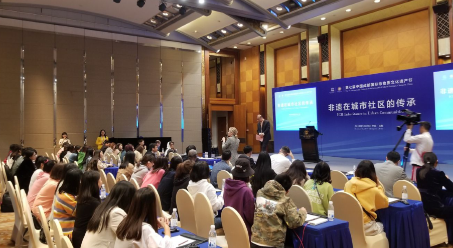 与此同时,“非遗在城市社区的传承”“传统工艺促进乡村振兴”和“美食类非遗项目的活化保护与可持续发展”三个平行论坛聚焦非遗传承,深入探讨保护新路径。在“非遗在城市社区中的传承”论坛上,来自联合国教科文组织的代表,70多个国家文化官员代表,国内非遗界代表和专家,传承人代表和非遗企业代表,共同就非遗在城市社区的传承的意义、途径进行了深入探讨。上海市文化和旅游局一级巡视员王玮以“见人见物见生活,上海市非物质文化遗产社区传承传播实践”为题,分享了上海的实践,活泼生动的演讲博得现场阵阵掌声。