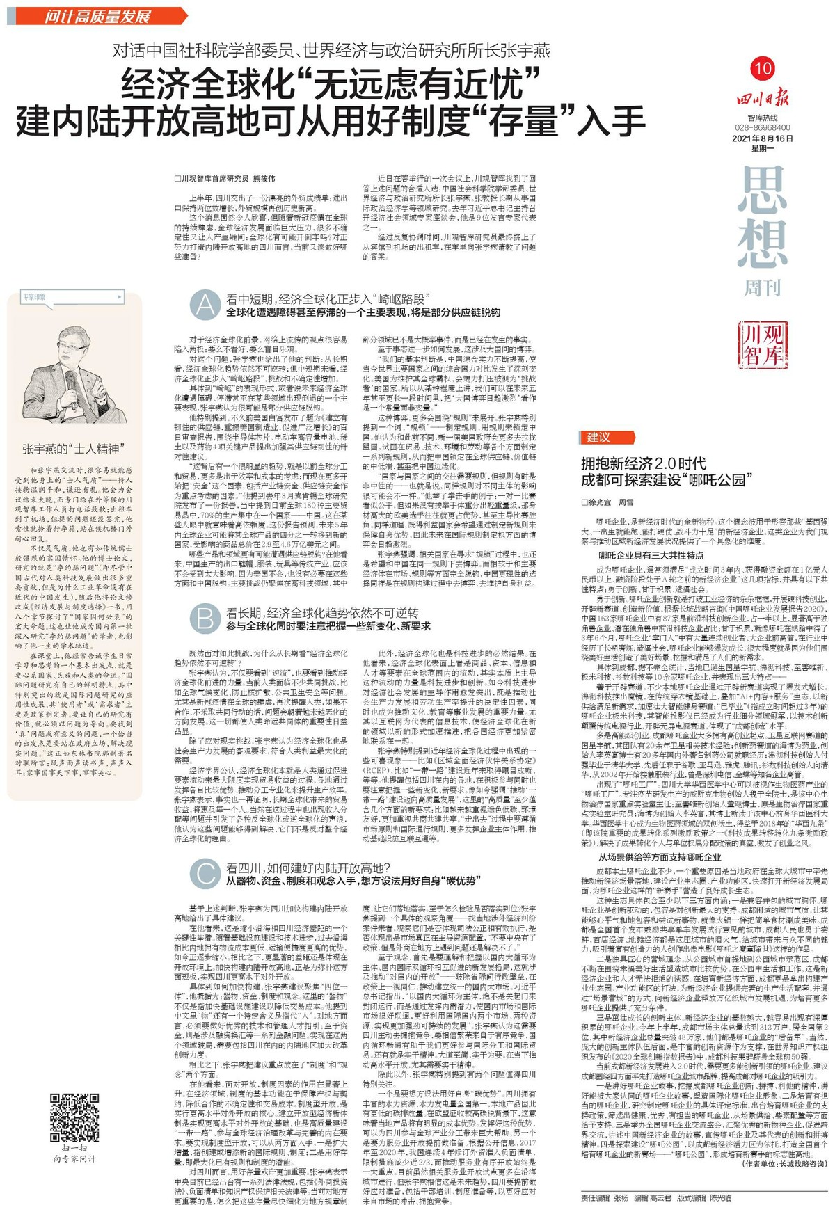 川观智库对话国际问题专家张宇燕:经济全球化“无远虑有近忧”,四川要用好制度“存量”