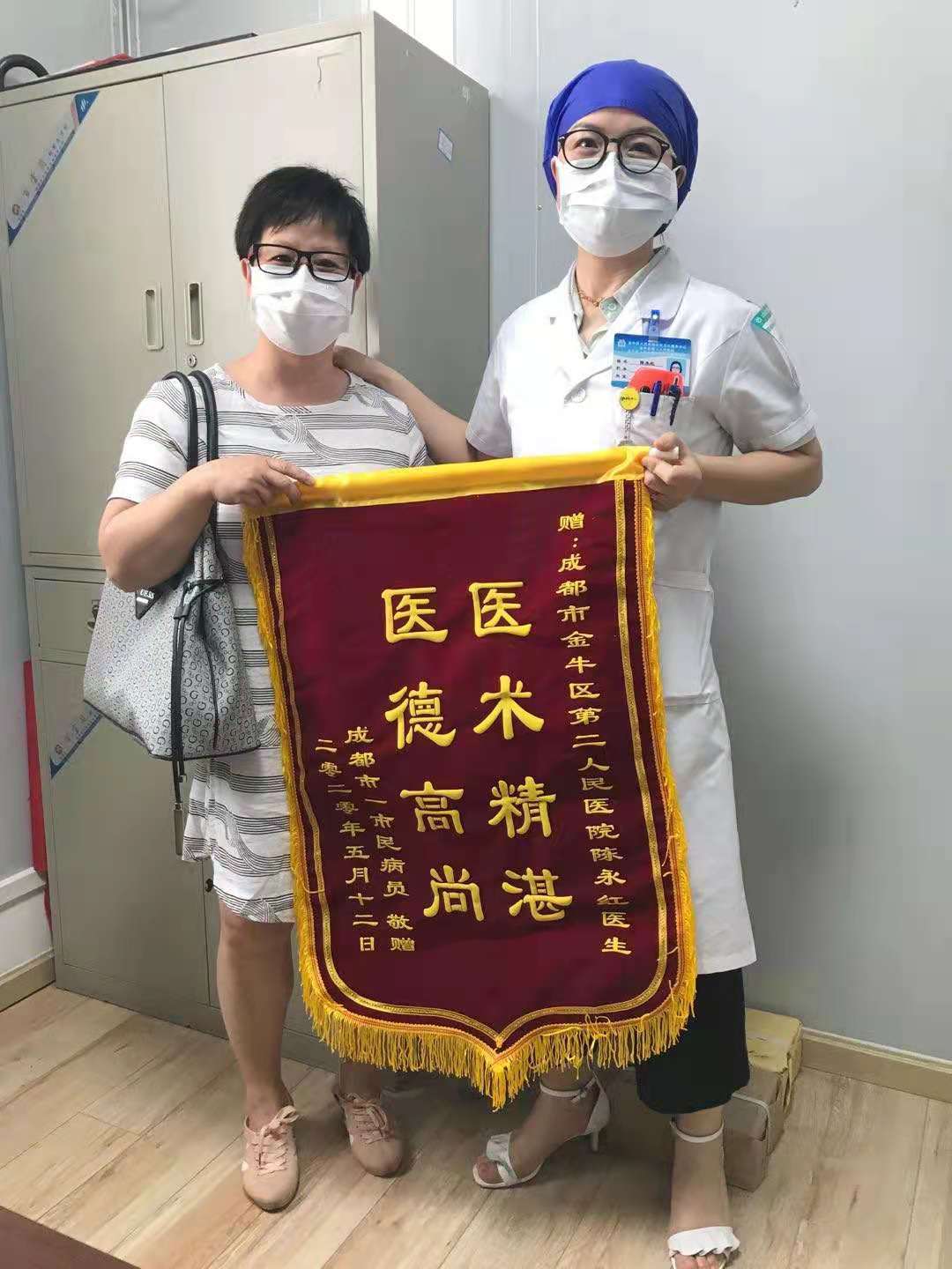 在同事们眼中的“铁人”陈永红,在病人眼中是无微不至的“陈老师”。2020年农历大年三十这天,薛女士因急性腹痛腹泻来到人北社区卫生服务中心就诊。考虑到在这个特殊的日子再让患者辗转颠簸恐怕会耽误病情,陈永红直接沟通院内各方,决定先让患者在门诊输液治疗,然后再陪同薛女士开药、缴费、拿药,完善一切诊疗手续后,看着薛女士病情有所缓和,陈永红才赶回家中过年。由于处理及时,薛女士治疗两天后再次到中心复诊,腹痛腹泻的症状已基本控制。事后,薛女士带上锦旗来到中心,对陈永红万分感谢:“陈老师,你不仅是给我治病,更让我感受到来自医者的温度,真的太感谢你了。”