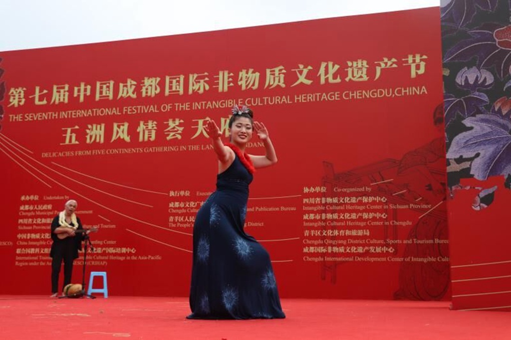 斐济传统民族歌舞、日本传统舞蹈、美国夏威夷民间呼拉舞……10月21日,第七届成都非遗节主会场时空旅的舞台上,充满异域风情的表演吸引了现场观众驻足。尽管非遗节临近结束,但是依然充满了满满的国际范儿。