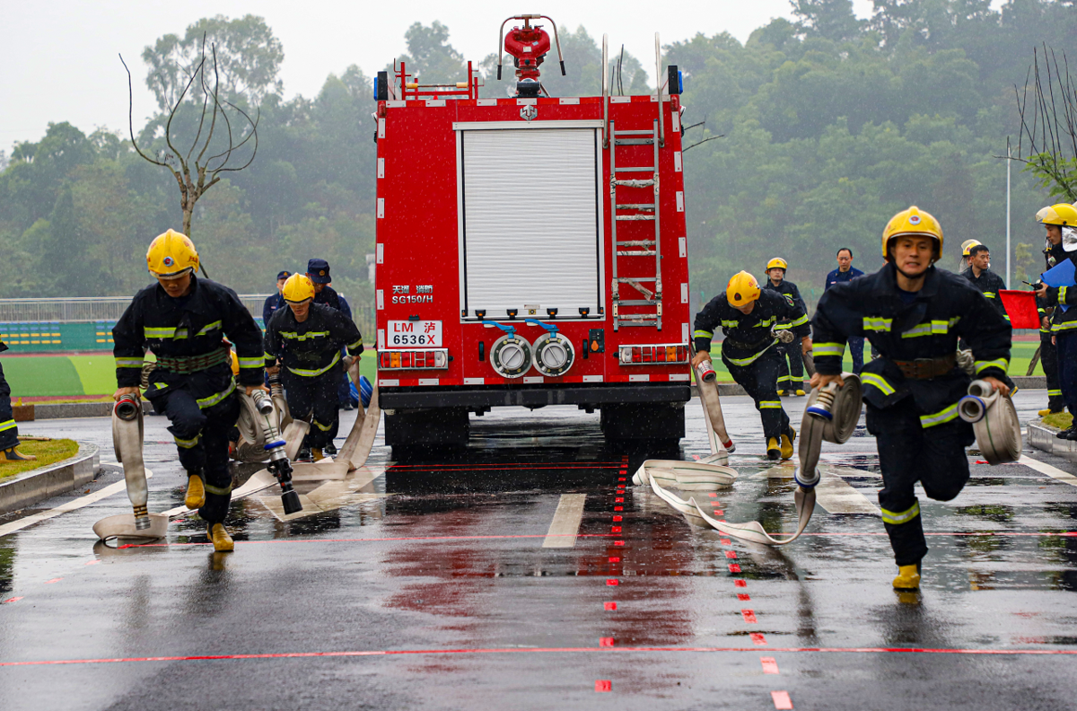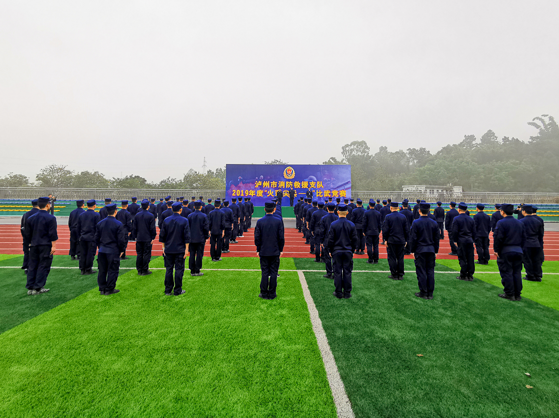 10月21日上午,天还下着雨,泸州市消防救援支队开展了2019年度“火蓝尖兵—E”比武竞赛,来自全市9个企业下属专职消防队,共100余人在雨中完成了竞赛。