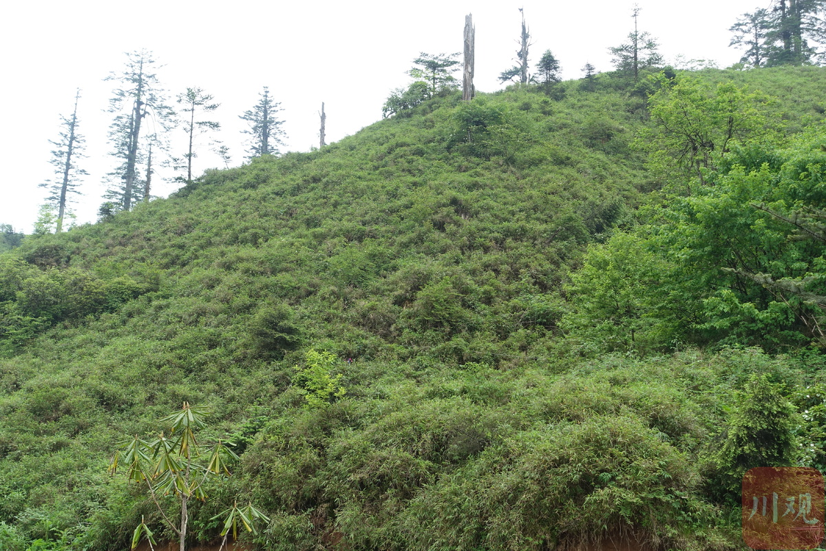 熊猫用脚来投票。在川观新闻记者近日跟随的一次野外科考中,意外发现修复样地中有了小熊猫粪便和小径竹上的啃噬痕迹。在自然保护组织的支持下,他们的修复方案正在大相岭自然保护区复制。