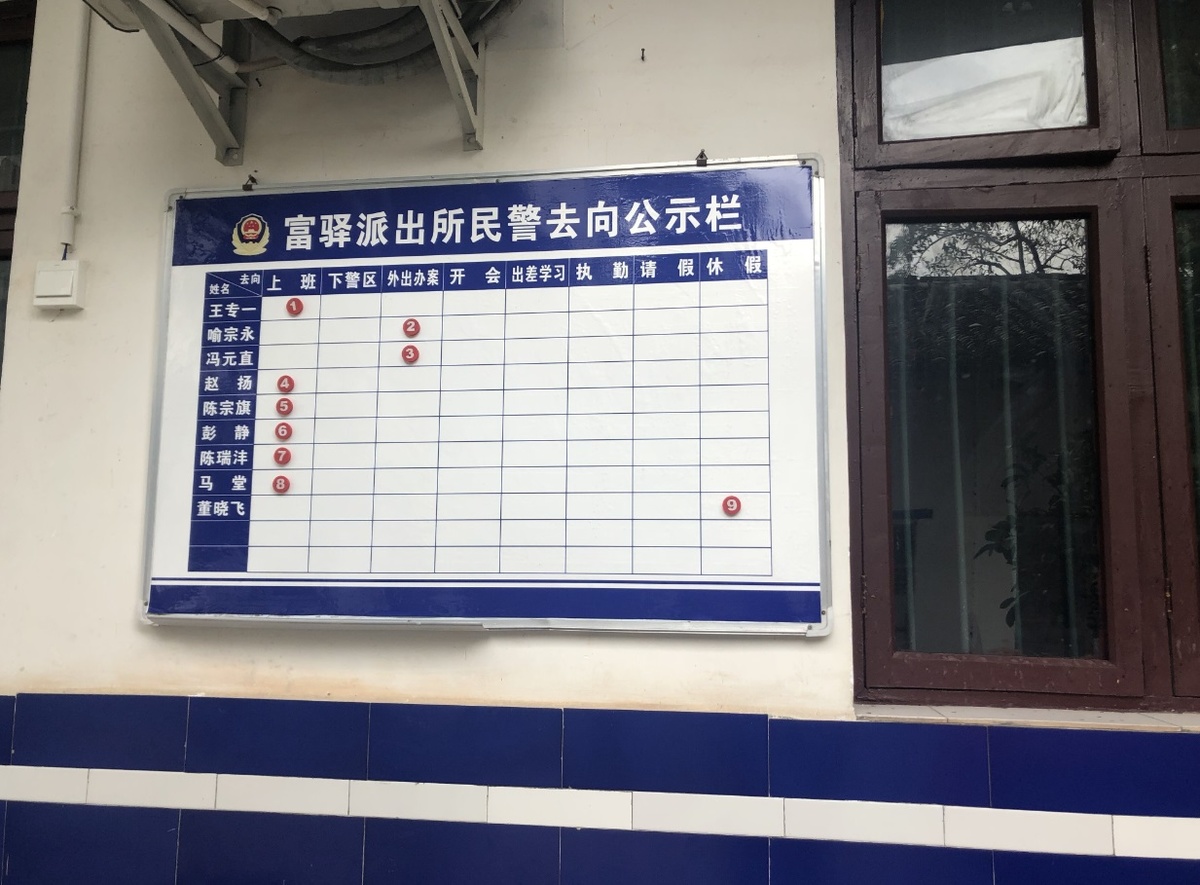 记者在富驿镇镇派出所公示栏内看到王专一的工作状态为:在岗。记者向他提出采访请求时,他请记者与县公安局联系,得到同意后,他再接受采访。