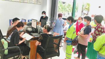 最近,遂宁高新区新入职了一批环卫工人,需要办理工资卡,但由于工作比较忙,工作时间难以到银行网点办理。工行遂宁物流港支行党支部在了解情况后,立即组建金融服务小组,带上移动设备,主动上门服务。