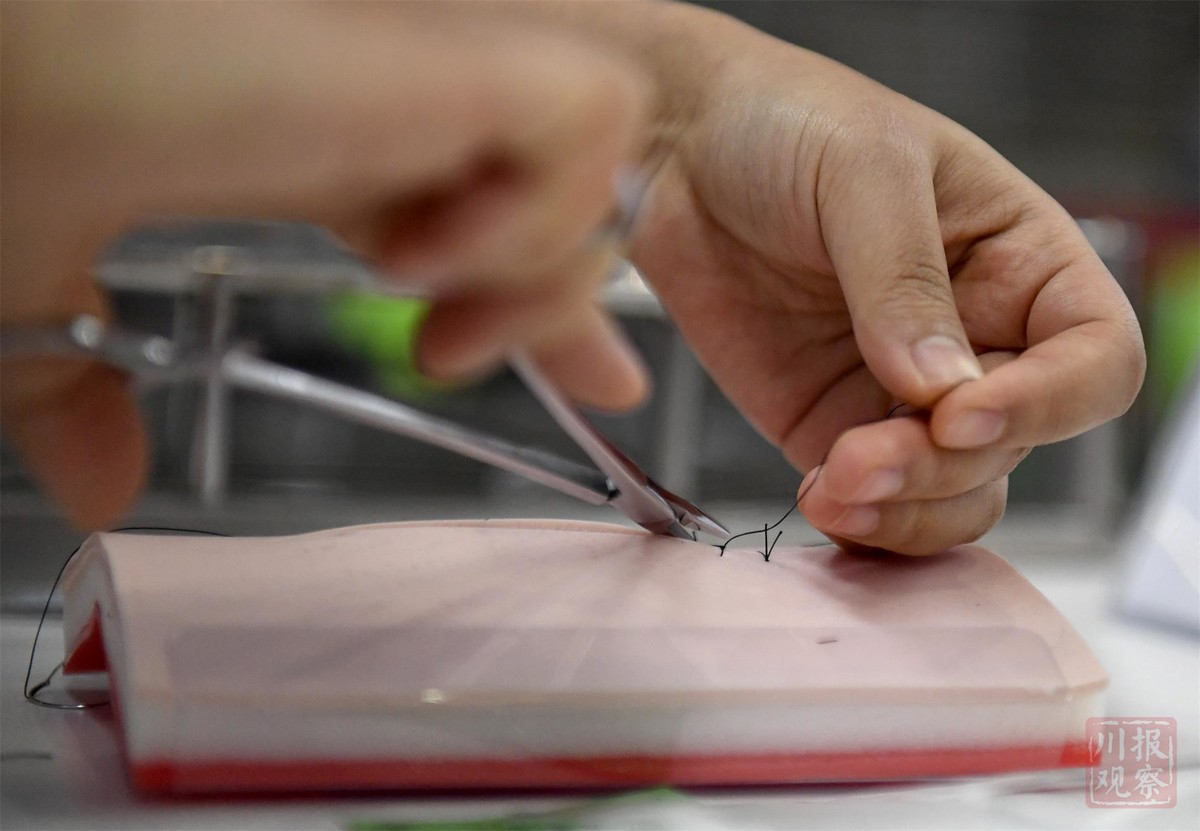 竞赛中,由成都医学院经过严格训练的学生志愿者充当“标准化病人”,模拟真实的问诊场景。在规定的时间内,选手们要通过病史采集、专科查体、辅助检查判读,准确分析病例信息,快速明确诊治要点,并进行相应的临床操作。考察“准医生”面对病患时的现场应变和急救应对,考察的是临床思维、临床决策能力,使比赛更有难度、更具实战性,更能体现“准医生”的心理素质、理论基础和技能水平。