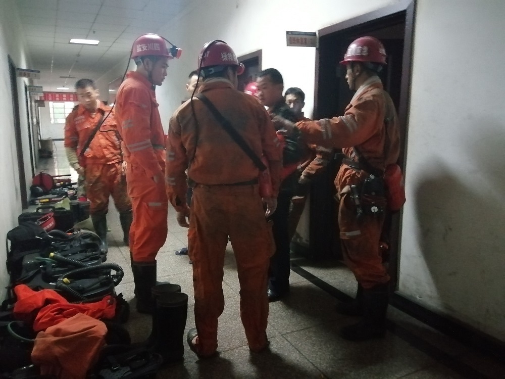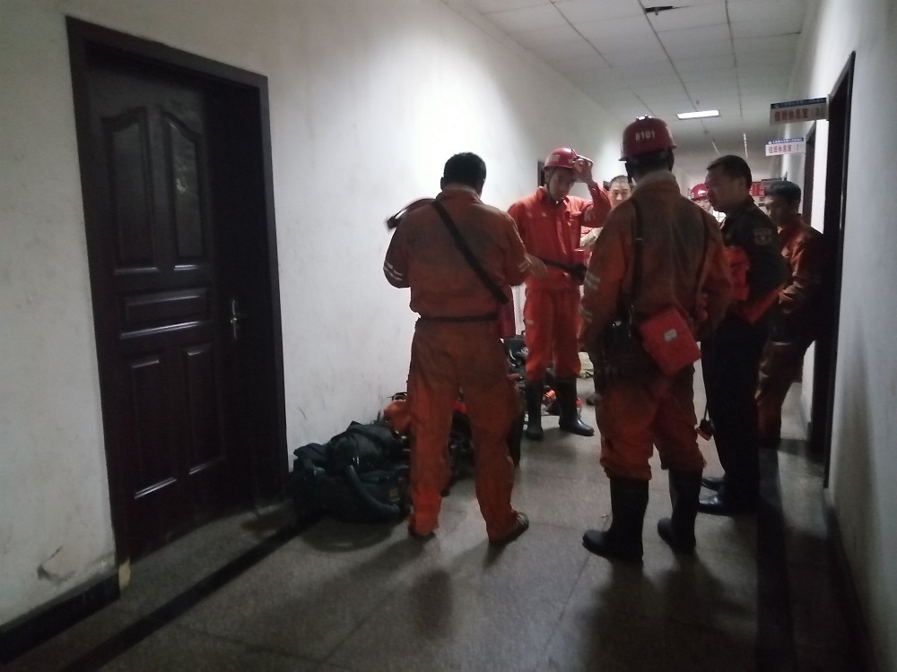 记者在川南煤业办公楼一楼看到,此次下井的救援队分成2支小队、共13名救援队员。据一名队员透露,预计下井救援6小时,最迟今晚10点撤出。