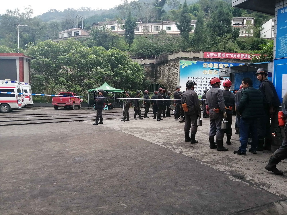 下午14时,古叙煤电救援队准时进入现场。郭荞璐 摄