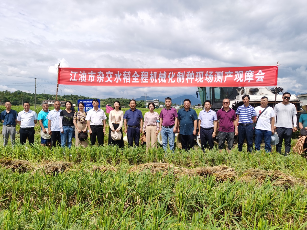 近日,这一问题有了新突破。8月19日,记者从绵阳市农业科学研究院(简称:绵阳市农科院)获悉,在近日于绵阳举行的“杂交水稻全程机械化制种技术”示范现场测产验收和考察评议会上,经现场实割测产,全程机械化制种比人工制种每亩增产6.3%~18.3%,经对生产成本的测算分析,每亩节约成本347.00元。这意味着杂交水稻全程机械化制种技术示范取得显著成效。