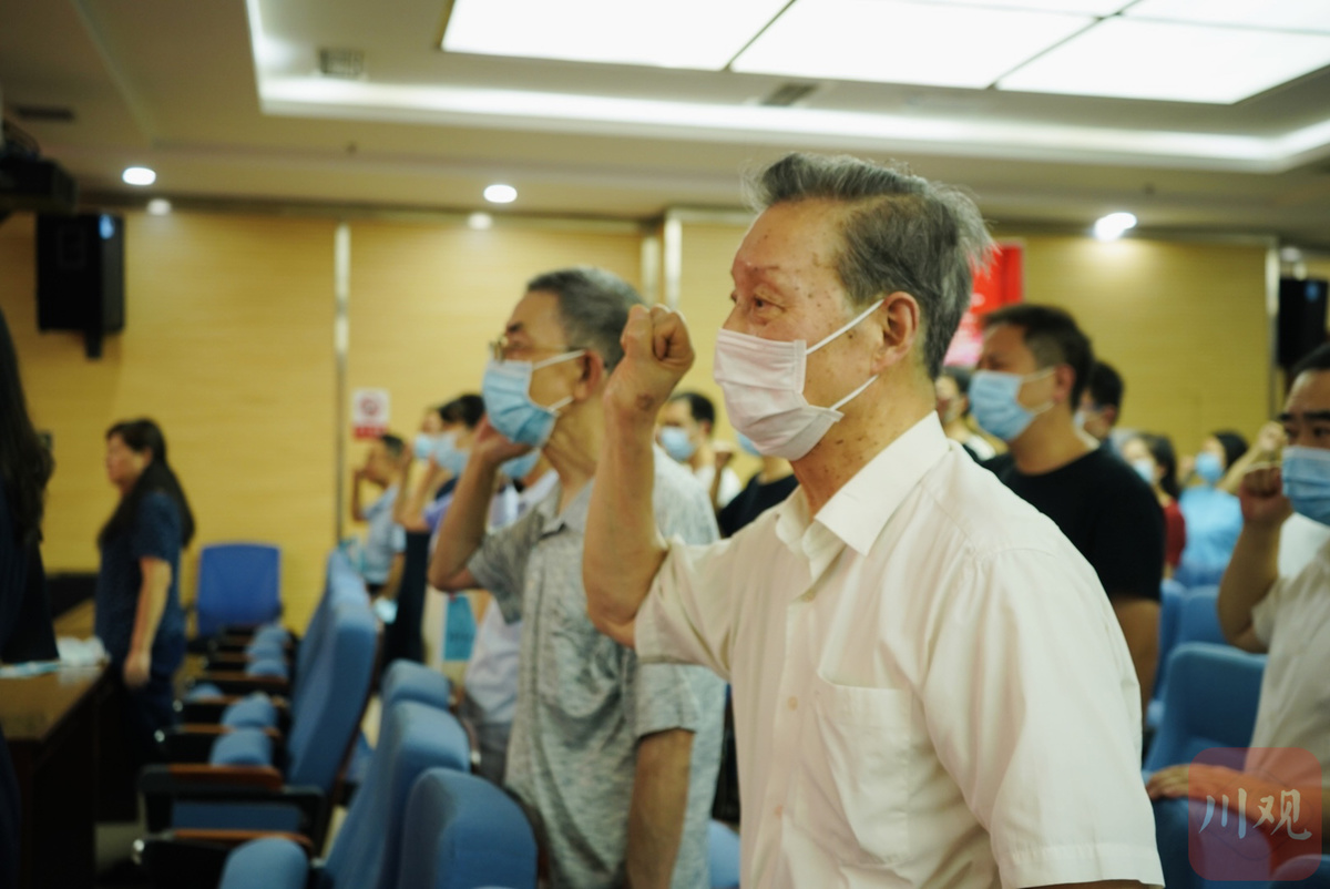 86岁的陈厚骧宣读希波克拉底誓言。魏冯摄