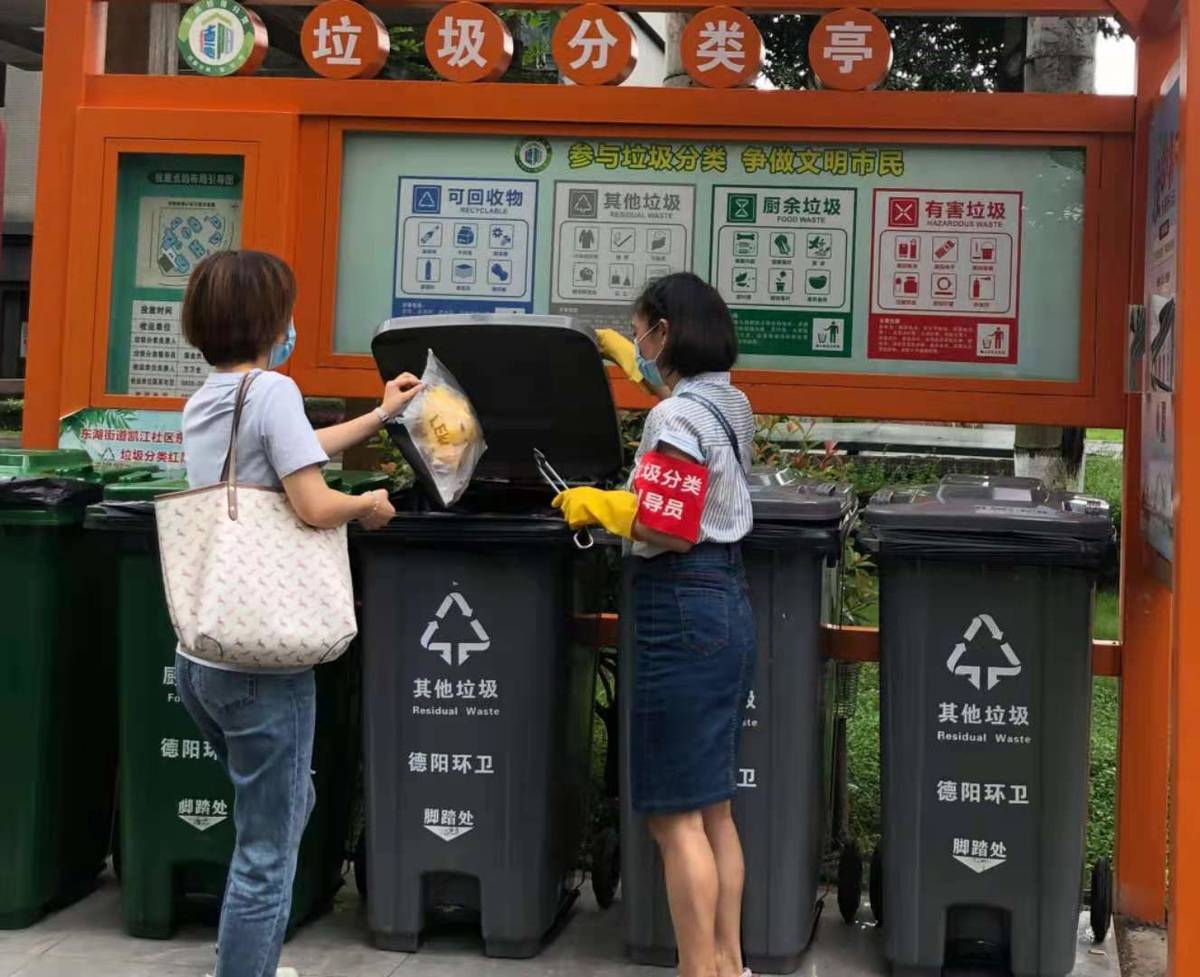 近日,家住德阳市区东湖尚嶺小区的业主发现,小区的垃圾分类亭又有了新变化:分类垃圾桶穿上了“新马甲”,还增配了专用洗手池、灭蝇灯,并加装了摄像头。“扔垃圾后可以在洗手池洗手,灭蝇灯还可以减少垃圾亭蚊虫的滋生,感觉更人性化了。”该小区居民李女士对这一变化连连称赞。