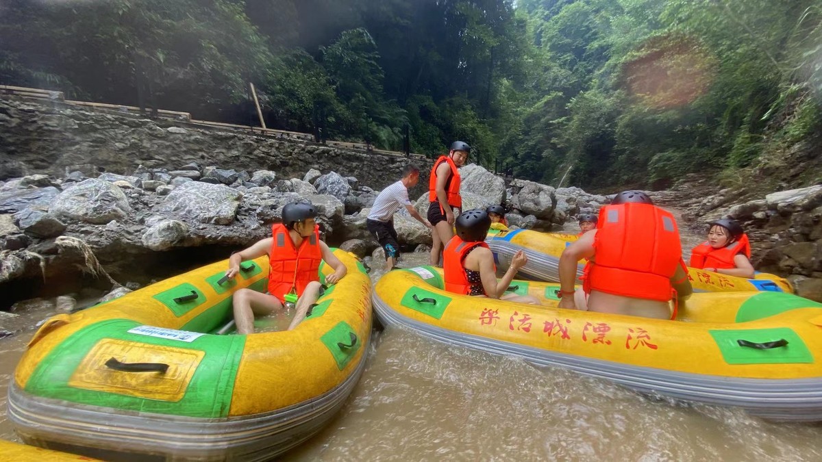 8月20日下午,广安华蓥市红岩乡,全程6公里、落差达260米、被誉为“西部第一漂”的华蓥山黑龙峡漂流开始试漂,并迎来首批游客。