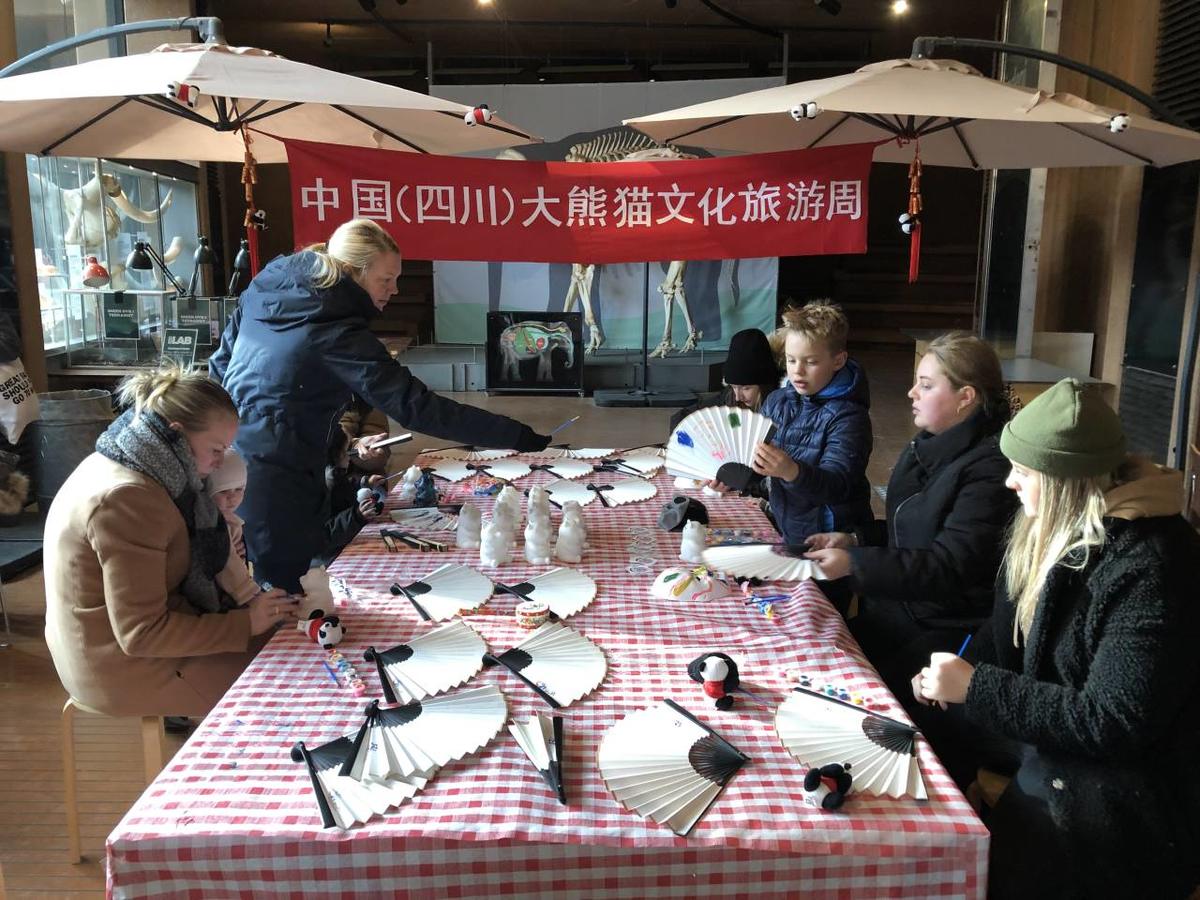 在活动期间,哥本哈根动物园充溢浓郁的“中国风、四川味”。活动现场以大熊猫作为核心元素,不但有四川文化旅游图片展,还专门设有熊猫DIY彩绘区,让观众能够现场创作白模熊猫公仔创意彩绘,并作为纪念品带走。