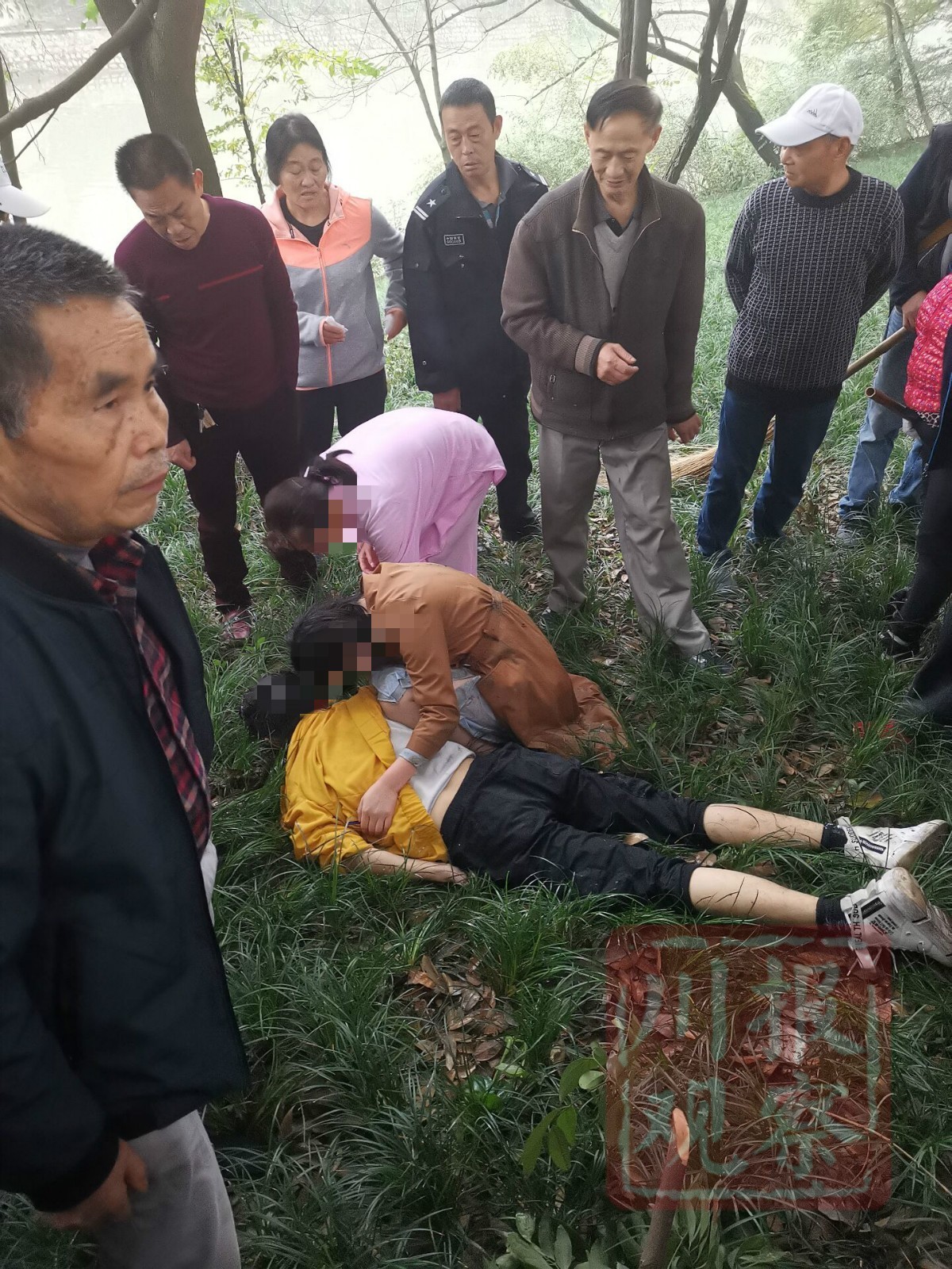 一黄衣男子不知何故,坠入水流湍急,水温冰凉的沙河内,不过十多秒钟,便被河水淹没。情急之下,同行女子跳去河中搭救,不料水性不好,人没救起,自己也遇险,两人眼看就要被河水吞没。千钧一发之际,附近晨跑的市民迅速营救,有人找来树枝,有人抛下绳子,还有人来不及脱衣服,勇敢跳入水中,抓起了两人,但由于水温太低,第一个入水救人的人很快出现抽筋,体力不支,大声呼救,不仅人救不上来,救人者也面临生命危险。