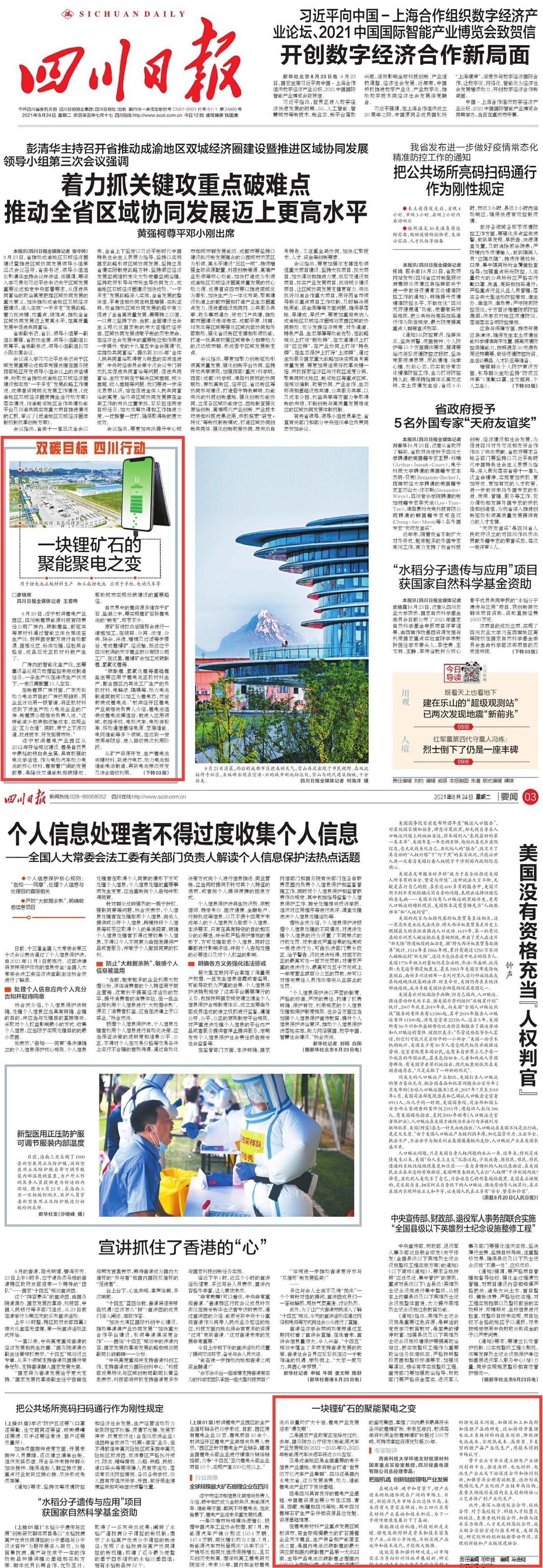在碳达峰、碳中和背景下,锂产业迎来的机遇体现在广阔的市场上。目前,新能源汽车市场占比总体不高,未来将有大量需求释放,加上四川具有良好的产业基础和技术积淀,为下一步持续健康发展打下了基础。