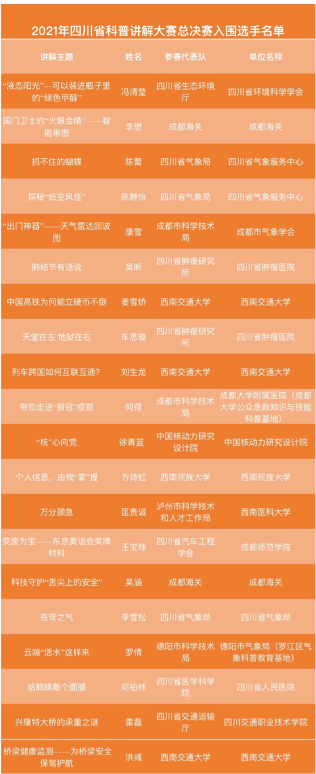夏天夏天悄悄过去,留下小惊喜。期盼了一个多月,8月26日,2021年四川省科普讲解大赛总决赛终于要在成都举行。
