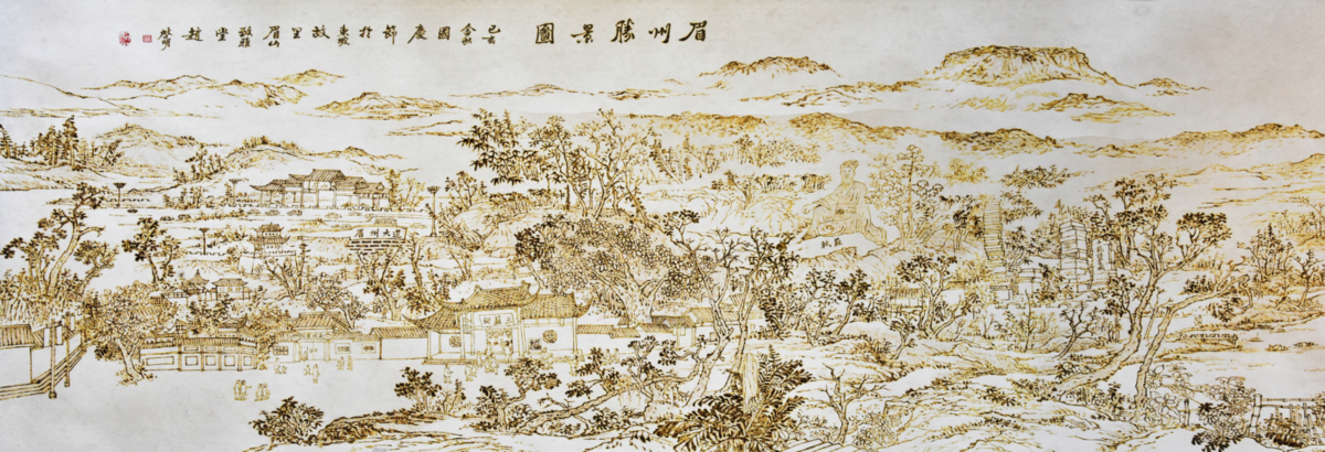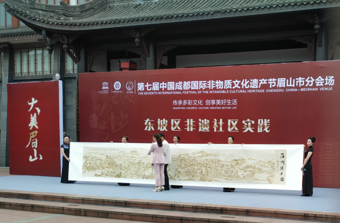 此外,赵启明创作的《眉州盛景图》更是运用火绘特殊的技艺,古色、古韵、古气息,磅礴大气,充分展示了老眉山换颜新眉山的巨变胜景。