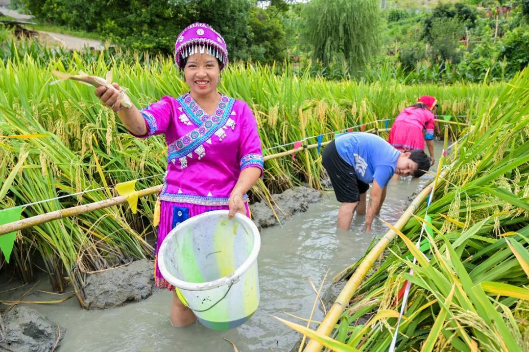 今年,啊喇乡水稻种植面积达4300亩,其中“鱼稻共生”基地510亩,培育形成了凹子、大村、先锋营、街子4个“鱼稻共生”集中连片示范点,在稻田养鱼模式下,再结合稻花鱼节等体验活动,每亩稻田的收入比原来要高出2400多元呢。