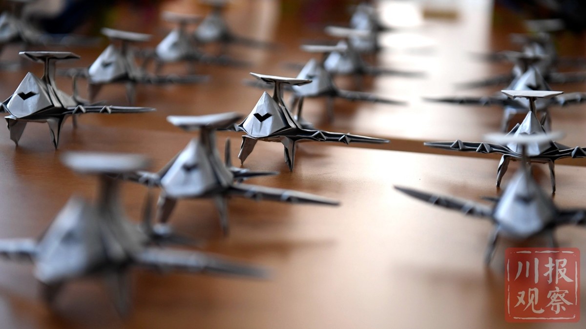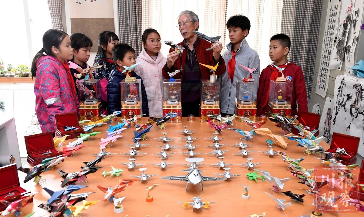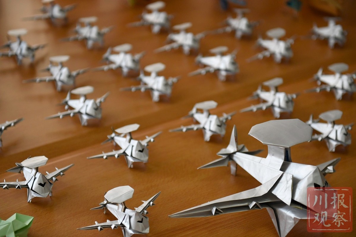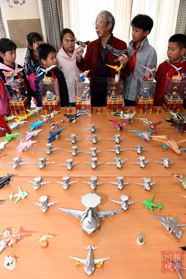 60多年来,许树全通过实物、图片、杂志等多种渠道已经掌握了近二十款国产战机外形和民用飞机的折法,至今已折出了上万架纸飞机编队,最小的纸飞机袖珍到没有指甲盖大。