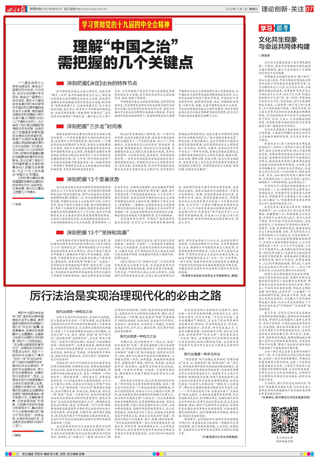 《决定》是完善和发展我国国家制度和治理体系的纲领性文件。经国序民,正其制度,我们应从整体上把握几个关键点。