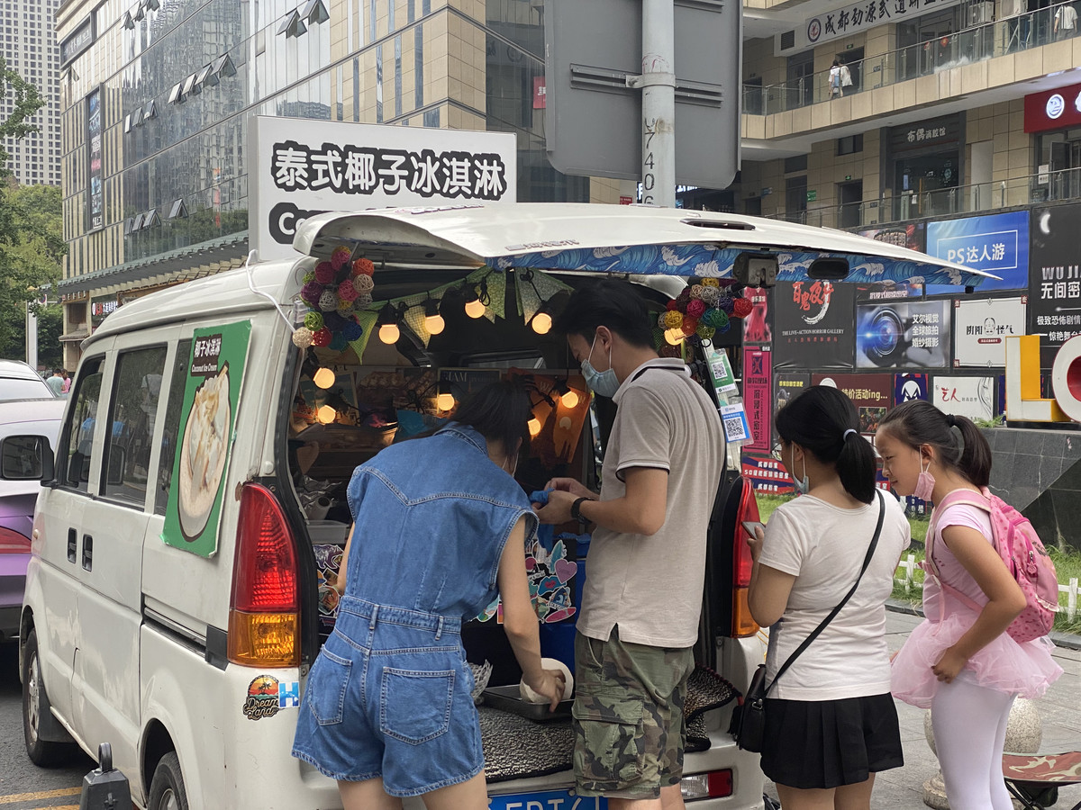 “来早来晚都吃不到,能不能吃到看缘分吧,据说老板不是每天都出摊。”在电子科大就读的大四学生刘春明说到。和刘春明一样,有很多的年轻消费者都在建设中路附近寻找一辆卖“椰子冰”的移动网红车。川观新闻在建设路小吃街看见,这家叫“泰式椰子冰激凌”的店是用一辆面包车打造,主打产品为椰子冰激凌和椰子水。半个椰子壳内装满了椰子肉、面包片、糯米和冰激凌,这款产品深受年轻消费者喜爱。“天气好的时候,一晚上能卖几百个。”泰式椰子冰激凌老板介绍。